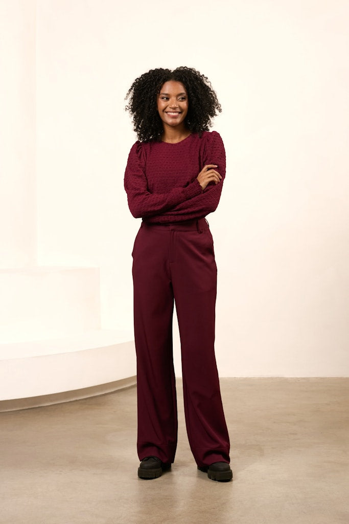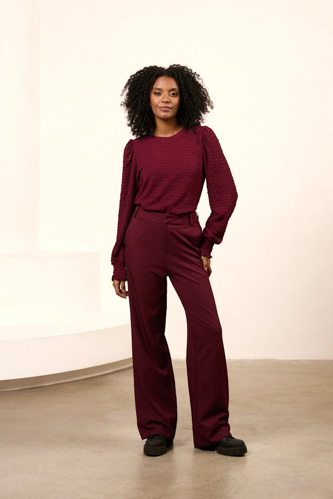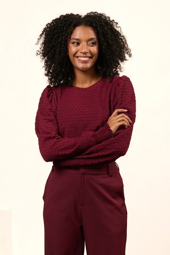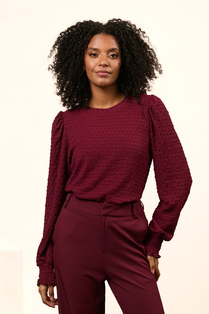 Deze bordeaux kleurige top van Lofty Manner is een must-have voor elke vrouw. Gemaakt van 95% polyester en 5% elastane, biedt deze top een comfortabele pasvorm en is perfect voor elke gelegenheid. Of je nu op zoek bent naar een chique outfit voor een avondje uit of een casual look voor overdag, deze top is de perfecte keuze. De subtiele glans van het materiaal geeft deze top een luxueuze uitstraling. Draag deze top met lange mouwen en voel je zelfverzekerd en stijlvol. Bestel nu en voeg deze prachtige top toe aan je garderobe!