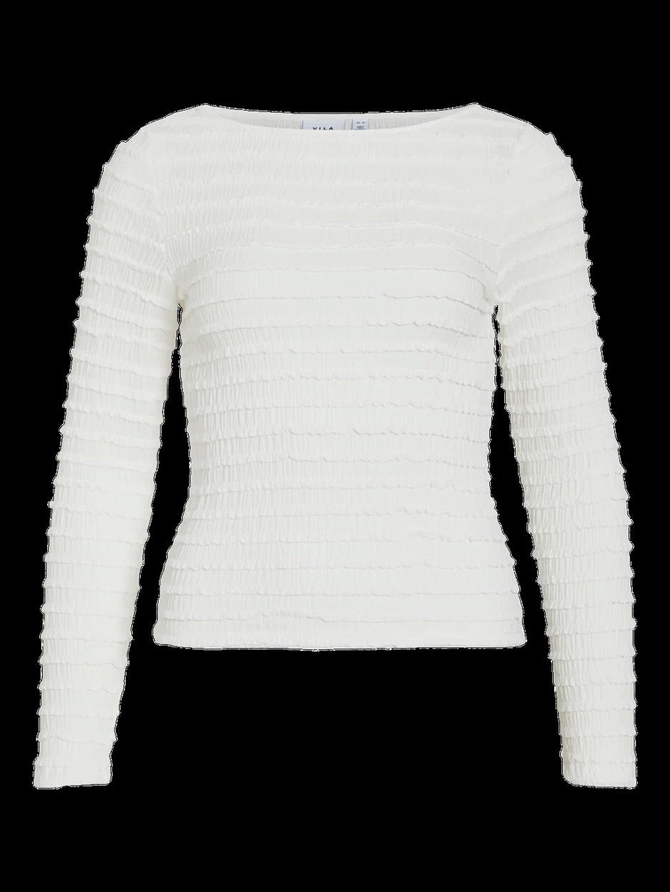 Deze prachtige dames top van Vila is perfect voor het komende seizoen. De top is uitgevoerd in een frisse witte kleur en gemaakt van hoogwaardige materialen, namelijk 97% polyester en 3% elastane. Dit zorgt niet alleen voor een comfortabele pasvorm, maar ook voor een elegante en nauwsluitende look. De top heeft lange mouwen en is ideaal om te dragen tijdens de wat frissere dagen. Of je nu gaat voor een casual of chique look, deze top is een veelzijdige toevoeging aan je garderobe. Shop nu deze trendy en tijdloze top bij NummerZestien en creëer eindeloos veel stijlvolle outfits!